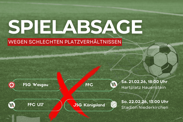 Beide für dieses Wochenende angesetzten Spiele unserer Frauen und B-Juniorinnen mussten aufgrund schlechter Platzverhältnissen abgesagt werden.